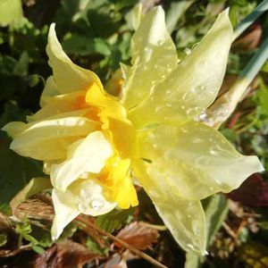 💐今日のお花 1 💐 いつもの散歩コースで 綺麗な水仙に出会いました 雨に濡れたスイセン・・・ 朝日を受けて綺麗です✨✨