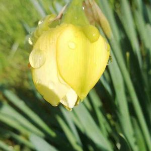 💐今日のお花 2 💐 同じスイセンの蕾です・・・ 雨粒をためる姿が可愛い❤️