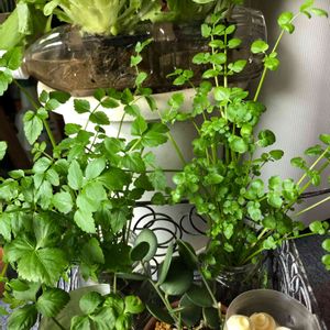 レタスの🥬見切り品2個で100円をペットボトルに穴を開けて水耕栽培に‼️少しずつ食べよう🥬💕下はセリ、ミツバ、ネギはどうかなぁ