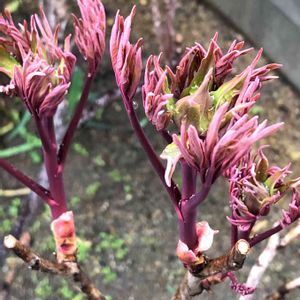 牡丹の花芽…こんなに小さくても、すでに華やかオーラを放っています👀❣️ ☀️☀️☀️☀️☀️ ボタンのはなの あかちゃん👶 もっと おおきくなると、 つぼみは ピンクの おいしそうな もも🍑みたいになります。 そして、つぼみが はじけると きれいな、おおきなおはなが さきます🌟