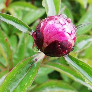 雨上がりです🌂 つやつやでまん丸の芍薬のつぼみ・・・ 可愛いです💕 雨粒が光って綺麗です✨✨