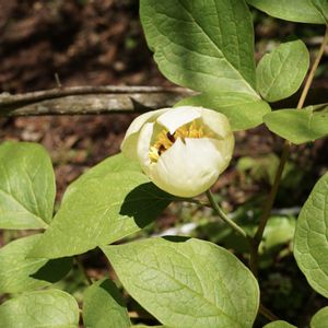 ヤマシャクヤク(山芍薬) ボタン科の多年草で広葉樹林下に生えています😊 山にあり芍薬に似ていることから名がつきました😃 枝先に一重の一輪花を付けますが、3日程しか咲きません🙃