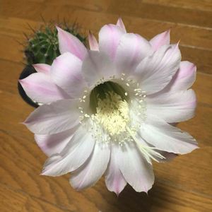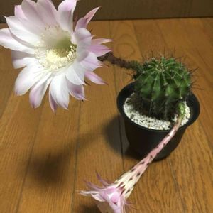 仕事から帰ると、玄関でエキノプシスの蕾が膨らんでいた。今さっき、開花してるの発見❣️