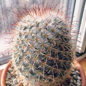 マミラリア 【豊明丸】 フック状のカギ刺 オレンジの刺は袖を引っかけるとなかなか 外せない‼️痛い😵💥 動物に引っかかり移動するため🚙 白い刺は肌を覆い日焼け防止や寒暖差に 適応するためとか😎