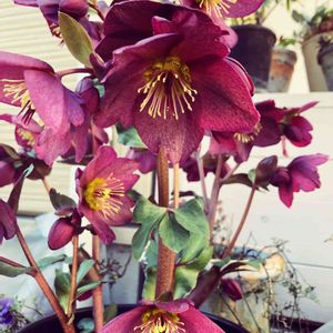 今年お迎えした 個性的なダークレッドのクリスマスローズ。 咲き方がパテンス系のクレマチスのよう。 そして何といってもこのラージネクタリー。 赤✖️グリーンの 補色同士の目を惹く組み合わせが 一度見たら忘れられない 強烈な個性を放ってます。 花郷園のigでpop-upイベントの紹介に 映り込んでいたこの花に 私の心は釘付けに。 ラスト2日前に取り置きをお願いして、 仕事抜け出して駆け込みました😆 パンジーのドラキュラに通じる魅力が この花にはあると思うのですが、 いかがでしょうか。
