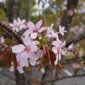 濃いピンク、小振りの花が可愛い桜でした 🌸