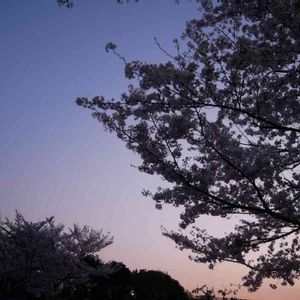 夕方の公園で。 さくらの向こうに まぁるいお月様。
