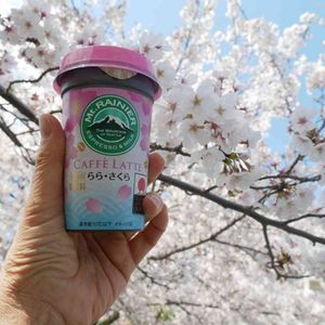 今日の桜とマウントレーニアららさくら。 買い物帰りのコーヒーブレイク。