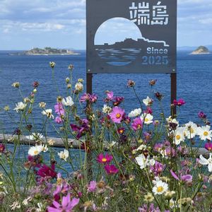 日曜劇場📺『海に眠るダイヤモンド💎』ラストシーンの再現 野母崎の西側展望所に一島一家のコスモス畑を見に行ってきました♪ 朝子達が最後に眺めていた「軍艦島とコスモス」あいにくの曇り😢 また用事が出来たので、晴れの日にリベンジ撮影してきます