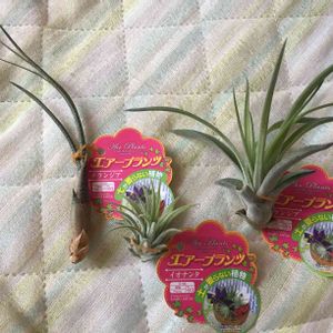 ダイソーでエアプランツ3つゲット(^。^) 真ん中のは イオナンタって名前がわかったけど 両端のは何ていう名前なんだろう?