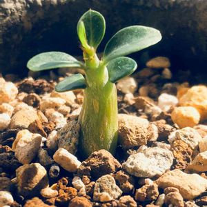 ●パキポディウム・ビスピノーサム 実生開始から半年経過 冬は特にトラブル無く乗り切ってくれました(*´ω`*) 暖かくなってきたので新芽が出てきたよ〜👀