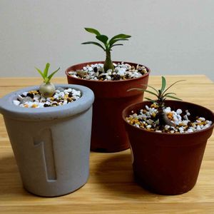 パキポ三兄弟🌱 小さめの鉢が少なく、ありあわせのものに植えてしまいました笑 まだ小さいので、どれくらい日の当たる場所に置くのが良いか、悩みどころです😅
