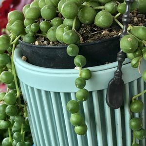 今日はつぶつぶの日なんですね😊 梅雨前に植え替えしたグリーンネックレス💕 伸びるだけ伸びて色が良くなかったけど、ここまで元気になって増えてきてます~(^з^)-♡ あれ⁇ネックレスの日だった(ノ≧ڡ≦)☆テヘッ