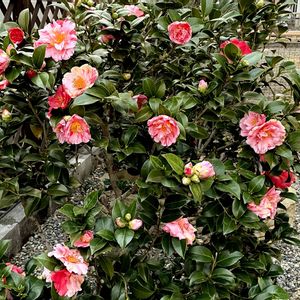 去年の花後に、透かし剪定をした庭の椿。 今年の花付きはまずまずかな❓ 雨が降る前に、中の方や、裏側に咲いている花をカットして、部屋に飾ろう。°○。*💖