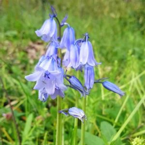 初めての出逢いは突然に🌿 シラー・カンパニュラータさん💙 会社の門を出て直ぐの こんな草むらに不似合いな美しさ💚💜 なぜこんな場所に⁉️ 綺麗過ぎて 草花とは思えないのですが…( 〃▽〃)
