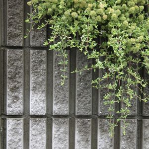 雨上がりのタイム 花が終わり全てが緑だけどグラデーションがブロックの色とマッチしていて素敵