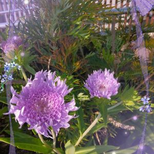 すんごい雨降り☂️☂️ ミリオンベル と スカビオサ ① ミリオンベルハンディこんもりブルー 簡易ビニール温室で冬越しから 咲き始めて満開に💓 ② 去年のミリオンベル うまく切戻しできず まばら咲き💦 ③④ スカビオサ ブルーバルーン 去年 プランターに寄植え 1度咲き終わって花無しだったけど 冬越しして 咲き始めました🎵