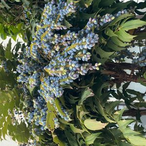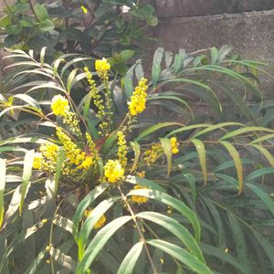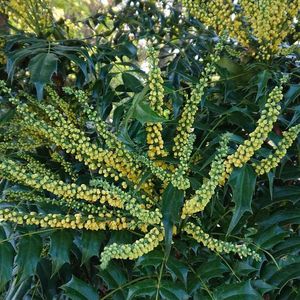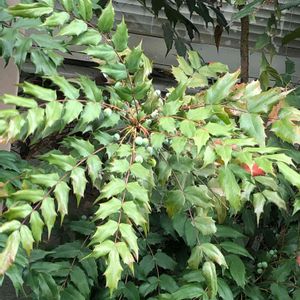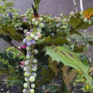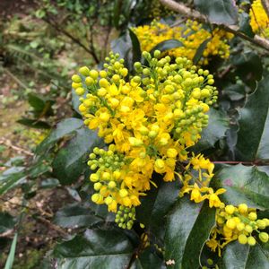 お正月に咲いていた柊南天🌼 今は種が重たそうに実っています‼️ 初めてアップして撮ってあげました❣️ 緑の君もねぎらってあげましょう💚