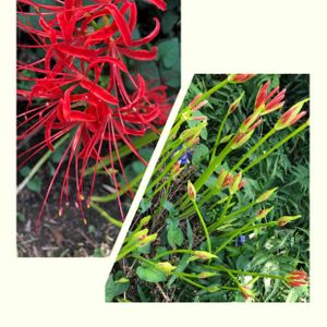 散歩道花壇に彼岸花と紫の花が咲いていました❤️💜