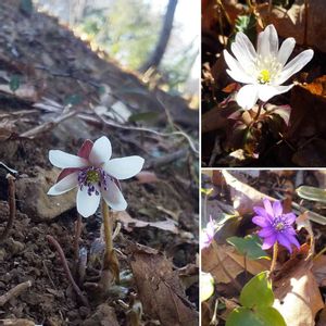 ミスミソウが咲いていることを知り、会いに行ってきました。ポツリ、ポツリですが可愛いく咲いていました💕 右上のアズマイチゲも見れて嬉しかったです✨🌼🌿 片倉城跡公園 2023.2.28 撮影