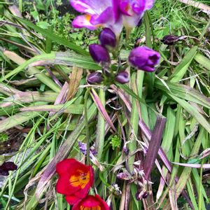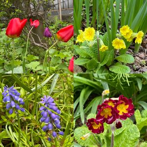 実家の庭パート2 何年も植えっぱなしのチューリップ🌷 なのに大きな花を咲かせていました💕 肥料もあげてないし球根も溶けずに頑張っていて凄いなぁ😆 ムスカリやら春の花があちこちに🤗