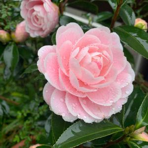おはようございます😃 週末、雨の予報☔️ 最近、ツバキ の美しさに目覚めた私。 小さいころから普通にありすぎて気にもしてませんでしたが😅 これは「王昭君」と言う名前のツバキ 。 ぱっと見、バラ?という雰囲気のピンクの八重に一目惚れ😍 名前も色々で、来週末から始まる文化センターの「ツバキ 祭り」を楽しみにしてます❤️
