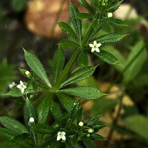 ヤエムグラがやっと咲いた💕と思ったら 違っていました👀❗️ 最初の一輪ですが、蕾があちこちに✨ これから楽しみです😊 🌿🌿🌼☘️☘️🌼🌿🌿🌼🍀☘️ シラホシムグラ Galium aparine L. アカネ科の越年草 ヨーロッパ原産の帰化植物 ヤエムグラによく似ているが、 花色が白 (ヤエムグラは淡緑色) 花の直径 2~3mm (ヤエムグラは1.5mm) また、茎の節(葉の付け根)上部に長毛が密生しているのが特徴(ヤエムグラは無毛) 🇫🇷Le Gaillet gratteron