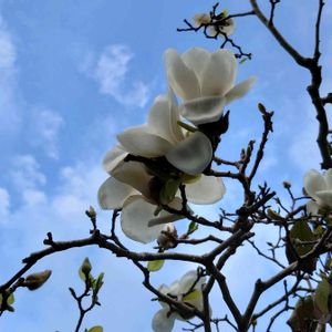 花友さんのお宅に、白木蓮の花が咲いてます🤍 青空に白い大きな花がふっくらと優しい咲き方