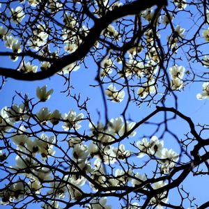 ハクモクレンが白い大きな花をいっぱい咲かせています