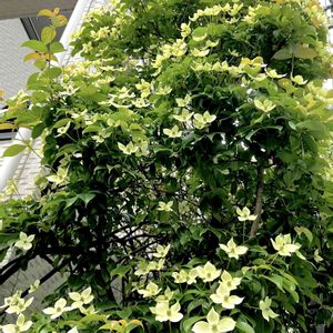 🏷樹木見上げ隊 エコクラフトレッスンに行く途中、満開のヤマボウシを見上げて💚💚💚