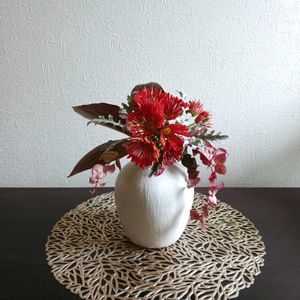 会えないけれど、気になっている人へ送る花。 ガラスは赤ですが、光加減でいろいろなように見えるものです。赤色といってもその幅は 限りないです。 このアレンジは和洋折衷なので、クリスマスにもお正月にも飾ることができます。 花器: 中国製赤いガラスの花瓶 花材: テマリソウ、ミニカラー、ヒペリカム、ユーカリ、ラークスパー