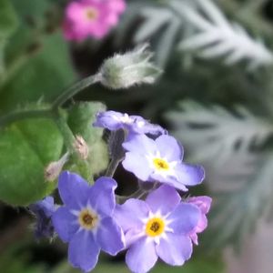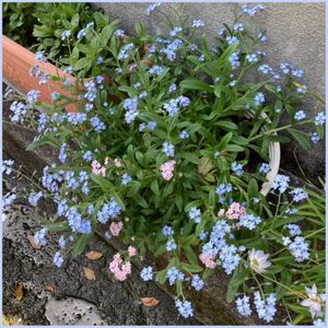 🪴草花たち その175 ワスレナグサ 小さな青い小花たち… 去年は写真で見たらキュウリグサとそっくりで見分けがつかなかった…ww ✿(^^*)(^^*) ✿ 📍 「雨やさし 勿忘草に 降りにけり 」 佐藤美恵子 ジュリアーノさん主宰🏷水曜日は水色 にゃんママさん主宰🏷ちっちゃいものクラブ 🏷ブルーのときめき❣️ 🏷青い小さな花マニア 🌤 *・゜゚・*:.。..。.:*・'🌸'・🌿*:.。. .。.:*・゜゚・* ⌘ メモ ⌘ 🔸科名・属名 ムラサキ科 ワスレナグサ属 🔸学名 Myosotis 🔸英名 forget-me-not 🔸別名 ❇︎Vergissmeinnicht(ドイツ語名) ❇︎わするなぐさ(忘るな草) 植物学者の牧野富太郎博士命名。 定着しなかった。 🔸由来 ❇︎ 「Myosotis」(ミオソティス) ギリシャ語。毛におおわれた細長い葉が、ハツ カネズミの耳に似ていることに由来。 ❇︎ワスレナグサ 英語名、ドイツ語名の訳 🔸原産地 ヨーロッパ 🔸花期 4月~6月 🔸花色 青 白 ピンク 🔸特徴 原産地では多年草として分類されるが、暑さと 過湿に弱く夏越しできないため日本では一年草 扱い。草丈20~50cm。繁殖力が強くこぼれ種で どんどん増える。