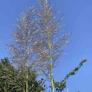 ススキさん🤗庭のススキさんがすごーく大きくなりました。秋晴れの青空に向かってのびのびとお日様の光をあびて幸せそうです。😁だけど植えた時には紫ススキさんだったんだけどー、美白した?