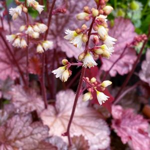 玄関のヒューケラさん💕 おはよう(*^▽^*)赤いリーフ🌿 が素敵💖お花も可愛い💖