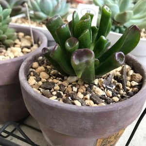 ゴーラムさんは盆栽的な感じで 愛でているのですが、 新しい芽?葉?がへそ曲がりと言うか…笑 このpicでは見えないけど、 反対側も同じ形でへそ曲がってます😂