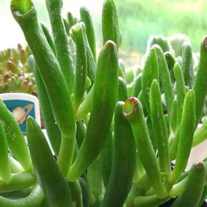 おうちの中の多肉⭐︎⭐︎⭐︎ スーパーの片隅で黄緑色のプラポットに 入れられてずっと売れ残っていた 宇宙の木。 我が家にやってきて早3ヶ月🥰 ツヤツヤに育ってます🌱 室内に置いている多肉は これとグリーンドラムだけです🌵