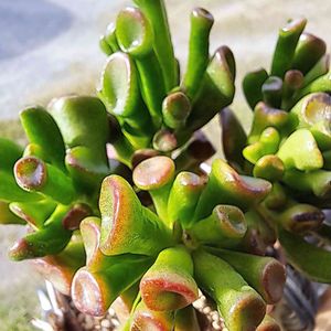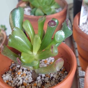 クラッスラ ゴーラム 宇宙の木 先っぽが 赤くなってきました。 午前中 大雨が降って ベランダ多肉は びしょ濡れです。 おまけに 今は日が差して 暑くなってきました。 ヒェー、蒸れる~‼️ 😂😂😂