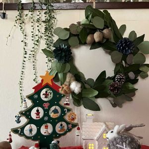 🎶 リース ♬ クリスマス🎄のコーナーに月桂樹とユーカリポポラスのリースをプラスしました。 クリスマス🎄の雰囲気がアップしました💓