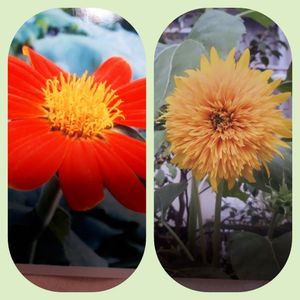 おはようございます 左 メキシコひまわり(チトニア) 右 名前は❔ひまわり 今日の花 昨年pic 見えにくくて恐れ入ります🙇