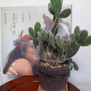 今日は、曇天😞 7月初めミッキーマウスの他肉植物ちゃんバニーカクタスと懐かしい舟木さんのLP盤です😃💕