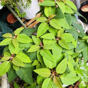 去年の冬にお迎えしたプリンセチアさん夏を超せてベランダで緑の葉をいきいきさせてます🌿🌿🌿先端が少しピンク色です(╹◡╹)短日処理していないのですが😆このまま冬に突入ですかね(๑˃̵ᴗ˂̵)🌿🌿🌿