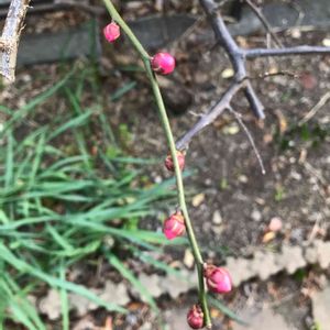 ご無沙汰投稿です。 今年も庭の枝垂れ梅の蕾が膨らみ始めました。 一番花はいつ開花するかな😄