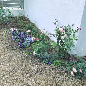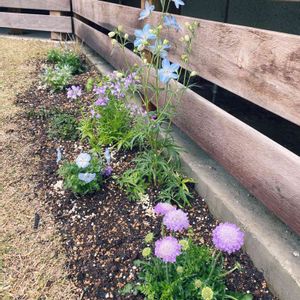 芝生を剥がしてお花のスペースを 作ってみた! ここは南向きの一等地( ¨̮ ) ブルーガーデンになるように色々植えて 楽しみたい♡奥行20cmだけども。 タグの写真がすんごくキレイで デルフィニウムモーニングライト購入♡ タグに150cmって書いてあるけど 奥行きなくて迫力ありそう ちー( ˙-˙ )ーん そしてこの横にお迎えのバラを 植える予定です🌹