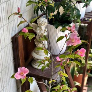 ツバキやクリスマスローズを咲いてます💕 小鳥エンジェルをセットで購入、 鉢も並び替えました! いい感じに、記録📷します🎶