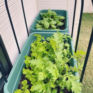あっという間に大きくなりました🥬 小松菜 レタス 人参 ラディッシュ♡ 収穫が楽しみ+.゚(´▽`人)゚+.゚ 普段は虫がこないようにネットで保護😊