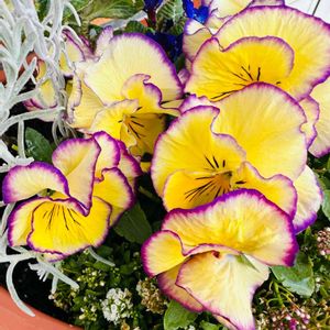 月曜日はビタミンカラーで⸜(*´ᵕ`*)⸝おはよう~*♬ 男前ビオラ🐯✨🐯✨🐯✨🐯✨🐯✨ 昨日は、ポカポカ陽気☀今日はど〜んより☁️ 寒暖の差で、体調を壊さないようにね🥰 🎶手洗い 携帯除菌シートして GS(๑˘0˘๑)~♩*+🎶