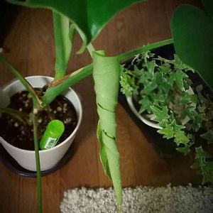 我が家のモンステラさん、久し振りに新芽が出てきました。 1日目、2日目、3日目。