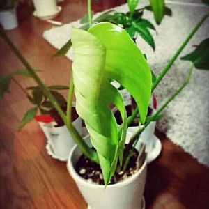 モンステラの新芽が出てきてしかも生き生きしてる〜こー言う発見とかあるから育てるの辞められんわ(b*´3`*d)