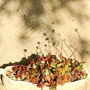 フランネルフラワー.°ஐ.* お花長持ちꕀ⋆♪̊̈♪̆̈ 花台の1番上に置いてあった コチアが強風で落下🌀 幸い被害はカンガルーポーの花1本で済みましたが 下に下ろしたらフェンスにもたれさせていた枝が 斜めっていて形が悪くて バッサリ切ろか思案中🪴 鉢が大きくなると重たいしꕀ⋆ 大きく育ったのにもったいない気もして なかなか思い切れません✂️ ミセバヤがこの時期につぼみいっぱい? カラスバミセバヤは咲いています❁¨̮ 花壇の軒下では つぶつぶセダムがたくさんのお花❁¨̮ かわいいねぇ(ㅅ´ ˘ `) 今日の 📸