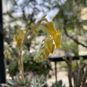 寄せ植えの多肉植物のお花 見切り品でお値打ち価格で売られていた子です。 名前は分かりませんが、かわいいお花を咲かせてくれました。 淡い黄色がホントにかわいい🩷